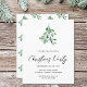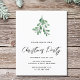 Familjen inbjudan och vänner till er jul party med den här snyggtens budgetinbjudan. Det är dekorerat med vattenfärgad grönt mistletoe och vita bär. Enkelt anpassade. Ursprunglig vattenfärg © Michele Davies.