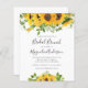 Vänner och familj i inbjudan för att hedra den blivande bruden med denna prisvärda Möhippa Brunch-inbjudan med en bukett av solblommor.