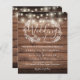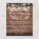 Med söt string ljus och en handdragen blommigt garland kan den här eleganten budgetera en inbjudan till rustiskt träbröllop vara personlig med dina uppgifter i chic lettering på en träpanelbakgrund. Designad av Thisisnotme©