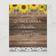 Budgeten Quinceanera Firande Rustic Farmhouse Solros och String Ljus Snöre Inbjudningar på Wood-bakgrund - innehåller vackra manustypografi och elegant med modern Land Farm House-Gnistra för det speciella 15:e födelsedagsfirandet.