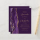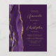 Den lämnat kant i eleganten i den moderna bröllopsinbjudan har en lila vattenfärgsagat gräns som trimmas med faux guld glitter. Anpassadet kombinerar skript av guld-färgad och sans serif typsnitt på plum lila-bakgrund. På baksidan finns utrymme för bröllop-information på en solid lila-bakgrund, tillsammans med en QR-kodgäst som kan söka på webbplatsen och OSAN, vilket sparar kostnaderna för utskrift och utskick av separat OSA kort.