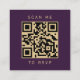 Det moderna kant-kortet för webbplatshöljet i bröllop som är lämnat i elegant har ett guld faux glitter gräns. Rubriken visas i handskriftsskript för guld-färgad, med anpassade nedanför i malltypsteckensnitt på mörkens lila-bakgrund. Ladda upp QR-koden för webbplatsen bröllop för att ersätta exempelbilden på baksidan, ramad av orden "sök mig till OSA".