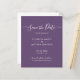 Personligen för budgetmanuset minimalistisk modern elegant för icke-foto-Mauve-Lila-annonsering i bröllop spara datum till ett rimligt pris, lågbudgetflygare. En ren designmall har en kursiv elegant med texten "Spara datum" i vitt på färg, dammig lila eller lavender. Lilla kärlek-hjärta mellan namn. ***NOTERA! *** BUDGETPAPPER ÄR TUNGT. ENVELOPES INKLUDERADE.** UPPGRADERA PAPPRA FÖR EN TEKER-PAPPER. *** Den här klassiska kortets perfekt för ett par som vill ha ett traditionellt datum med en modern beröring, utan foto. Kontakta designern om du behöver hjälp eller matchande artiklar.
