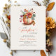 Den här söta babyduschinbjudan innehåller en vattenfärgspump som överflödar med blommor och löv ovanför ord "en liten pumpa är på väg" med ord "pumpkin" i handskript för orange som dekoreras med kurvor i imitationer av pumpvindruvor. Anpassa texten med namn i skript för mamma som ska användas i orange och detaljerna i tecknade grått sans serif-teckensnitt på en beige bakgrund. Perfekt för en gender-neutralt-falldusch.