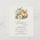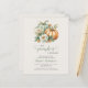 Den här söta babyduschinbjudan har en vattenfärgsbild med två pumpor i pastellskuggor av grönt och orange, med vita blommor och orangar som förslutna. Nedan visas ord "en liten pumpa är på väg", med ord "pumpkin" i ett handskript för sage grönt som dekoreras med kurliker i imitationer av pumpvinstockar. Anpassa texten med namn i skript för mamma som ska användas i orange och detaljerna i tecknade grått sans serif-teckensnitt på en beige bakgrund. Perfekt för en gender-neutralt-falldusch.