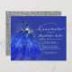 Modern Elegant Navy Blue Silver Grått Glitter Gnistra Blommigt Dress Gown Quinceanera 15:e födelsedagsinbjudan