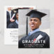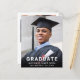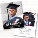 Ett budgetvänligt modernt tillkännagivande och en partiinbjudan från studenten. Gradens foto fyller kortets framsida, med "Student" överlagrad i fet minsta vita typografi. Lägg till namn, skola, högskola eller universiteten och klassår i enkel vit typografi. På baksidan lägger du till ytterligare ett foto och information om party.
