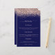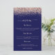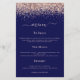 Budgeterad Modern Ro Guld Glitter, blå Bröllop-meny. En större storlek på 5,5 tum x 8,5 tum på en pris, på en elegant på 110 lb LINEN lagrar - för en lyxkänsla till underbart värde är detta perfekt för inbjudningar, menyer, program osv. Detta budgetalternativ på 5,5 x 8,5 tum är också storlekt tillgängligt i andra pappra val. SEMI-GLOSS 110 lb-kortet lagrar har ungefär samma tjocklek som ett vykort, så fungerar också bra för inbjudningar. FELT 100 lbs papper är en färgad, INTE vit, vilket ger en kraftig tryckning. MATTE 80 lbs pappra lagrar är ljust vitt, för skarp utskrift, underbart för dina menyer och program, medan SATIN 80 lbs pappra är tunt och lätt, perfekt för höljen. En elegant med faux glitter gräns till översta kant på båda sidor. Huvudet finns i ett skript med eleganter med dekortecken och resten av texten som du lätt kan anpassa, som är i mjuk rosa på marin blå bakgrund.
