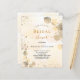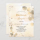För en elegant Möhippa. En gyllene vattenfärgad bakgrund som dekoreras med guldeukalyptus och faux guld glitter stoft. Personalisera och namn om bruden som ska vara och närmare uppgifter om party. Svart och guldfärgad färgad brev. Baksida: guldfärgad bakgrund med vattenfärg