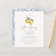 Fira den blivande bruden med denna elegant och det moderna citrontemade inbjudningskort för möhippan. Budgetplanen innehåller en handmålad vattenfärgad illustration av två citroner och citroner blommar som hänger från träd gren, där "hon hittade sin huvudsakliga klämning" står skriven nedan. Med klassisk elegant, typografi och en modern vridning av handskriven kalligrafi är denna chic vattenfärg inbjudningskort för möhippan perfekten blandning av tidslängd och contemporary, rustik och minimalistisk. Baksidan av denna stora klämning mot inbjudningskort för möhippan, har en blå italiensk bricka för en liten medelhavscharm. Modern blommigt inbjudningskort för möhippa, perfekt för alla möhippor i vår eller sommar, vare sig det är en bakgård brunch, en vinodling eller en bredvid firande. Denna utformning kommer att ge en aning solljus till alla teman som rör möhippa, inklusive rustika, bondgårdar, italienskinspirerade och citrusfruktteman. Anpassa inbjudan med din händelseinformation, eller använda Zazzles lättåtkomliga Design Verktyg att byta typsnitt, färg och placering. Som en del av budgetvalet för Zazzle är lakan inte en vanlig storlek eller papper kvalitet för inbjudan. Om du vill ha den här designen på ett inbjudningskort kan du hitta den i vår butik eller använda på Zazzle Make Maskin för att överföra den till valfri produkt. Bläddra i vår butik om du vill ha mer citron inbjudningskort för möhippa.