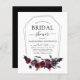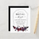 Budgeten Halloween-Oktober 31an Höstfall Mörk Watercolor Mörk Lila Bröllop Inbjudningskort för möhippa mot svart bakgrund - omfattar hemlig och läskigt elegant-manustypografi med moderna blommor och Fladdermus Vingar för den speciella Creepy Bride till firande.