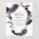 Budgeten Halloween-Oktober 31an Höstfall Mörk Watercolor Mörk Lila Bröllop Inbjudningskort för möhippa mot svart bakgrund - omfattar hemlig och läskigt elegant-manustypografi med moderna blommor och Fladdermus Vingar för den speciella Creepy Bride till firande.