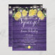 Med citroner grey och söt string ljus på en lila rustik träbakgrund kan den här budgetinbjudan för roligt möhippa vara personlig med din speciella händelseinformation. Designad av Thisisnotme©