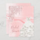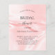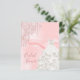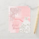Elegant, klassisk, glamorös och giftig stil inbjudningskort för möhippan. En vit klänning med faux glitter dropps, färgdroppstift. rosa,silke skriver ut som bakgrund. Med texten: Möhippa på framsidan skriven med ett modernt handskript i stil. Lägg till din händelseinformation på baksidan.