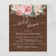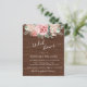 Budget Rustic Rosa Flowers with Wood Background Bröllop Inbjudningskort för möhippa - har vit handskript och elegant skript med rustiskt rosa ros och blommor och lush grey. Observera att kuverten INTE ingår i den här utformningen. Om du behöver kuvert kontrollerar du vår samling eller köper dem separat från marknaden.