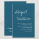 Budgetera Anpassa den här Boho Simple Elegant Mörk Teal and White Snyggt-inbjudan med ditt meddelande och information på baksidan. Denna minimalistiska inbjudan omfattar handskrivet manustypografi med snyggt med ett modernt färg för den speciella Bröllopsdagen firande.