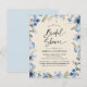Den här inbjudan från eleganten för uppsamlingar med tryckta Blommigtar innehåller dammiga blommigtar med blå vattenfärg med känsliga gröna vindruvor, parade med ett modernt typsnitt. Perfekt för alla säsonger. Om du vill göra avancerade ändringar väljer du Anpassa -> Redigera med Design verktyg.