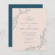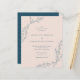 Modern och chic bröllopsinbjudningar, perfekt för firande i trädgården. Med handdragen löv med löv och blommor i marinblått mot rosa. En minimalistisk serif- och kursiv typografi visning dina uppgifter om bröllop och namn. Återgå till enkel polka dots på baksidan som kontrasterar framsidan. Som en del av budgetvalet här om Zazzle, bjuder dessa in kom i begränsada storlekar och pappra lagrar. Om du behöver ett annat storlekt eller pappert lagrar kan du överföra den här designen till ett standardformat 5x7 med hjälp av verktyg för designöverföring för fler alternativ.