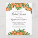 Vänner och familj i inbjudan för att hedra den blivande bruden med detta prisvärda Inbjudningskort för möhippan med orangar med vattenfärg.