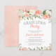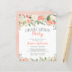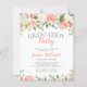 Vackra inbjudningar till studentfester i budgeten för blommigt. Utformningen har handmålad vattenfärg ro, ponnyer och vattendrag i nyanser eller rosa, persikor, korall och grädde.
