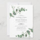 Eucalyptus Greenery foliage water color modern minimum elegant contemporary party bröllopsinbjudan. Enkel botanisk contemporary. Sage grönt, marinblått, svart och vit elegant, moderna kolorway kostym vår, sommarfall, höst- och vittringsceremonier i bröllop. Med utrymme på baksidan om du vill ha en QR-kod för att länka till webbplatsinformation.