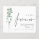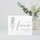 Ett ekonomiskt alternativ i BUDGET på en mindre storlek på 4,5 x 5,6 tum (110 lbs vikt), som är av samma tjocklek som ett vykort (är dock inte lämpligt för använda som vykort). OBSERVERA ATT DET FINNS EN inbjudan per lakan. QR-koden Eucalyptus Vi beslutade om för Bröllop spara datum. Lägg till QR-koden för bröllop webbplats på baksidan. En snyggt ställer in typografi i svart för ord Forever som ett komplement till resten av texten som du enkelt kan anpassa, med eleganten Watercolor eucalyptus löv till lämnat. På baksidan, en samordnande grönt.