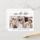 Budgeterad QR-kod - Modern och Elegant liggande Vågrät tre (3) Foto Spara datum Bröllop Magnet med handskript skrivstil. Datuminbjudningsmagneten innehåller skripttypografi och chic och enkel design som du kan lägga till ditt anpassade förlovning-fotografi bild till.