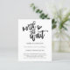 Ett ekonomiskt alternativ i BUDGET på en mindre storlek på 4,5 x 5,6 tum (110 lbs vikt), som är av samma tjocklek som ett vykort (är dock inte lämpligt för använda som vykort). OBSERVERA ATT DET FINNS EN inbjudan per lakan. Budgeterad QR-kod värd vänta Bröllop spara datum. Lägg till QR-koden på webbplatsen bröllop på baksidan. För när elaket, som tyvärr har blivit nödvändigt för er att ändra datumet för ert bröllop, är detta ett bekvämt sätt att informera era gäster om er ändring av planerna och om ett nytt datum så snart som möjligt. I den här ritningen finns ett skript som anger snyggten högst upp Värde vänta med en hjärtmotiv. Resten av texten kan du enkelt anpassa.