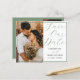 Elegant spara datum meddelande är prefekt för att få era bröllop-planer i rörelse. Den har en fotomall och stor "spara datumet"-typografi i sidans grönt mot en vit bakgrund. Anpassa med dina egna uppgifter.