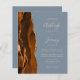 Spara kostnaden för att skriva ut och skicka separata OSA kort med den här eleganten, moderna bröllopsinbjudan för hela budgeten. Det lämnat kant har en bränd orange och en rost vattenfärgad agat gräns som trimmas med guld faux glitter. Anpassadet kombinerar handskrift, rityta och kursivt typsnitt i blek guld-färgad med en dammig blå bakgrund. På baksidan finns utrymme för information om bröllop på en solid, dammblå bakgrund, tillsammans med en QR-kodgäst som kan besöka webbplatsen och OSAN.