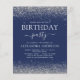 Budgeterad Anpassningsbar för Silver och marinblått Glitter oavsett ålder (13:e, 16:e, 18:e, 21:e, 30:e, 40:e, 50:e, 60:e) Vuxen Födelsedagsfest inbjudan . Detta är perfekten (13, 16, 18, 21, 30, 40, 50 eller 60) Roligt och Trendig födelsedag för en modern Gnistra Girly-Födelsedagsfest för Elegant. Kontakta designern om du vill matcha anpassade objekt.