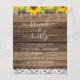 Budgeten Rustic Solrosbonde String Ljus Snöre Bröllop Brunch och BubLY Champagne Inbjudningskort för möhippa på Wood-bakgrund - innehåller vacker och elegant manustypografi med modern Gnistra för Land Farm House för den speciella Bröllopsdagen firande.