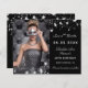 Ett foto Spara datumet för en 30:e (eller någon annan ålder) födelsedag På framsidan: Lägg till ett storlekt foto för lodrät. En klassisk svart bakgrund färg, dekorerad med faux silver-stjärnor. Anpassa och lägg till namn och detaljer. Vit brev.