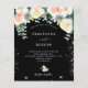 En trendig ljusstark, färgstark bröllopsinbjudan till blommigt i rosa, ro guld och vitt. En svart bakgrund, dekorerad med stora, lush vattenfärgade blommor, blommigtar i vitt, ro guld, rosa med lite eucaluptus grey. Faux silver glitter damm. Anpassa och lägg till information om namn och bröllop. Vit text.