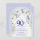 I mallen elegant 90:e Födelsedagsfest inbjudan finns en Boho-blommigt som är gjord av vita daisy och blå vilda blommor. Det här objektet är en del av Boho Arch Blue and White Blommigt Collection.