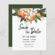 Budgeterade Orangar Citrus Greenery Sparar datumet kort
