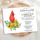 Kardinal och solblommor, minnesbegravning/Firande i livets inbjudan. Dessa sympatisörer på begravningen har en röd kardinalfågel i en bukett av solblommor i blommigt. Anpassa den här firande av livets begravningsinbjudan till dina nära namn & data, händelseinformation. COPYRIGHT © 2021 Judy Burrows, Black Hund Art - Med alla Höger reserverade. Budgeterade solblommor Firande i livet