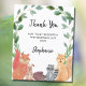 Tack till din familj och vänner med den här söta och visuella vattenfärgen Budget Baby Shower Tack You Card. De här skogarna, räv, tvättbjörn, hedgehog, bunny och ekorre är omgivna av vattenfärg, rustisk grey. Anpassa kortet med ditt namn och meddelande. Om du vill redigera ytterligare använda ändrar du teckensnittet, teckensnittet storlekt eller färg med Verktyg i Design. Eftersom vi skapar vår egen teckning kommer du inte att hitta just den här bilden från andra designers. Ursprunglig vattenfärg © Michele Davies.