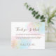 Ett budgetmässigt prist mindre än 4,5 x 5,6 tum alternativ. Finns i ett SEMI-GLOSS 110 lb-kort LAGRAR, vilket är standardalternativet (tjockare för inbjudningar), ELLER SATIN AVSLUTAR 80 lb PAPPER LAGRAR (perfekt för bilagor). Kuvert är ett extra som tillval och är något större än det storleka kortet. Säg tack till gästerna i elegant stil efter er speciella dag, med den här vattenfärgen tvättar av pastellkonger och teals som har stuvats med guld konetti i två hörn och brun serif-typografi med ditt tack och namn som du lätt kan anpassa. På baksidan byter du enkelt ut exempelfotot mot en egen favorit från bröllopsdagen.