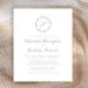 Den här inbjudan från elegant bröllop har en dammig blåskript i monogram som först omges av en botanisk andedräkt. Namn visas i ett dammigt blått skript med resten av texten i klassiskt serif-teckensnitt. Kortets baksida är starkt dammigt blå.