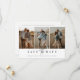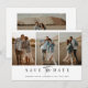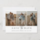 Meddela din största dag med vår budgetenkla, moderna, minimalistiska, fyra foto Spara datumet som innehåller tre foton på framsidan och ett på baksidan, med snyggt och en modern, minimalistisk layout.