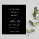 Elegantens enkla budget för minimal moody mörk, prisvärd mall för svartbröllop med en calligraphy-mall med trendig-snyggt i klassform. ++++++++++++++++++++++ Enkel att anpassa med dina uppgifter! Inbjudan är lämplig för vanlig svartvit bröllop. +++++++++++++++++ Observera att bakgrunden till färg kan ändras för att matcha bröllop-färg-schemat. Om det känns bekvämt att göra det kan du ändra det efter att du valt alternativet ANPASSA IT. +++++++++ LÄS DETTA INNAN DU KÖPER! Det här är ett budgetöverkomligt bröllop-kort som är tryckt på ett pappert lakan (varje lakan har ett kort). ++++ För att få bästa prisa kvalitet rekommenderar vi att du väljer den pappra typen av halvglöd (det är tillräckligt tjockt för att kunna användas för kontorsprogram) ++++ Om du behöver kuvert väljer du alternativet ENVELOPE. +++ Dubbla-kontrollera all information och all stavning i texten eftersom du får exakt det du ser - ingen annan kommer att kontrollera någonting innan du skriver ut. +++ Detta kort är designat för storleka 4,5 x 5,6 tum. I fodral väljer du en annan storlek av kortet och texten går utanför sidan. Allt måste fixeras innan du lägger till produkten i kundvagnen. Be Live Design Service om hjälp.