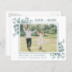 Spara datumet! Meddela bröllop till vänner och familj med dessa botaniska gröna eukalyptus, moderna fotosamlingar sparar datumkorten. Postkorten för budgetbröllopsinbjudan måste skickas som vykort för stora storlekar, så de kan få standardportoavgifter men behöver inte ett kuvert eller en returadressetikett. Anpassa med ditt favoritfoto för förlovning och anpassa med namn, datum och plats för bröllop. Lägg till webbplats och annan information på baksidan. Dessa unika gröna sparor i bröllop kommer att ge ett bestående intryck, era gäster kommer att spara datumet! COPYRIGHT © 2020 Judy Burrows, Black Hund Art - Med alla Höger reserverade. Budgeterat fotoeukalyptus botaniskt sparat datum