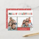 Ett färgat julleskal för helgdag för familjer har två av dina bästa familjefoller som "God jul" accentuerar med ett vitt, flerfärgat brev. Anpassa med ditt namn och året. Korten går tillbaka till en roligt Julgran mönster med röd bakgrund.