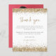Budgetera fotnoten Guld Glitter 50:e Tack. Ett budgetmässigt prist mindre än 4,5 x 5,6 tum alternativ. Finns i ett SEMI-GLOSS 110 lb-kort LAGRAR, vilket är standardalternativet (tjockare för inbjudningar), ELLER SATIN AVSLUTAR 80 lb PAPPER LAGRAR (perfekt för bilagor). Gräns i Faux glitter i guld ligger överst och grund längst fram och ersätt fotot på baksidan med en favorit från party. Tack är i ett handskriftsskript i stil som samordnar guld. Anpassa enkelt resten av texten. Du kan också ändra text och bakgrund färg genom att anpassa ytterligare alternativ om du vill.