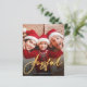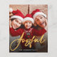 Det här är en budgetkort och ett modernt helgdag som är tryckt på ett platt pappert lakan och som använder en enkel fotobaserad design med "Glatt" i ett handskrivet skript i elegant guld. Ändra enkelt fotot på framsidan och växla ut familjen eller företaget namn med hjälp av mallalternativen. Kontakta designern om du vill ha frågor eller problem med den här designen eller om du vill ha matchande produkter.