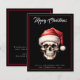 Budget Gothic Santa Skull God jul Card. En budget prisa mindre 4,5-tums x 5,6-tums halvglödande kort, ungefär som ett vykort. Ett unikt gotiskt Stil på en svart bakgrund med enkel vit text. Anpassa enkelt till hälsning och namn på båda sidor.