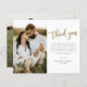 Det här moderna fotot bröllop tackkort har guld-skript tack, personligt meddelande och ett lodrät foto på framsidan. Baksidan innehåller ett andra foto som är ett vågrät med utfall i fullt. Klicka på Redigera om du vill anpassa den här designen.