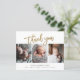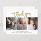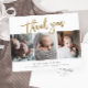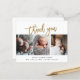 Det här Guld-skriptet 3 Photo Baby tacket You Card har handskriven kalligrafi i guld och födelseinformation på framsidan. Baksidan innehåller ett personligt meddelande från hela familjen. Klicka på knappen Redigera om du vill anpassa designen med foton och detaljer.