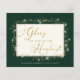 Budgeterad Elegant Julfagen Julkort för guldblomma med "Glory to God in the Highest" i faux guld-fotskript, omgiven av en guld och vit flagga av snöflingor mot bakgrund av en grönt av skogen. **Vårt papper i BUDGETEN är mindre, ljusare och känsligare, men ändå vackert! Glöm inte kuverten!** Kontakta oss på bkthompsondesigns@gmail.com om du behöver hjälp eller matchande artiklar.